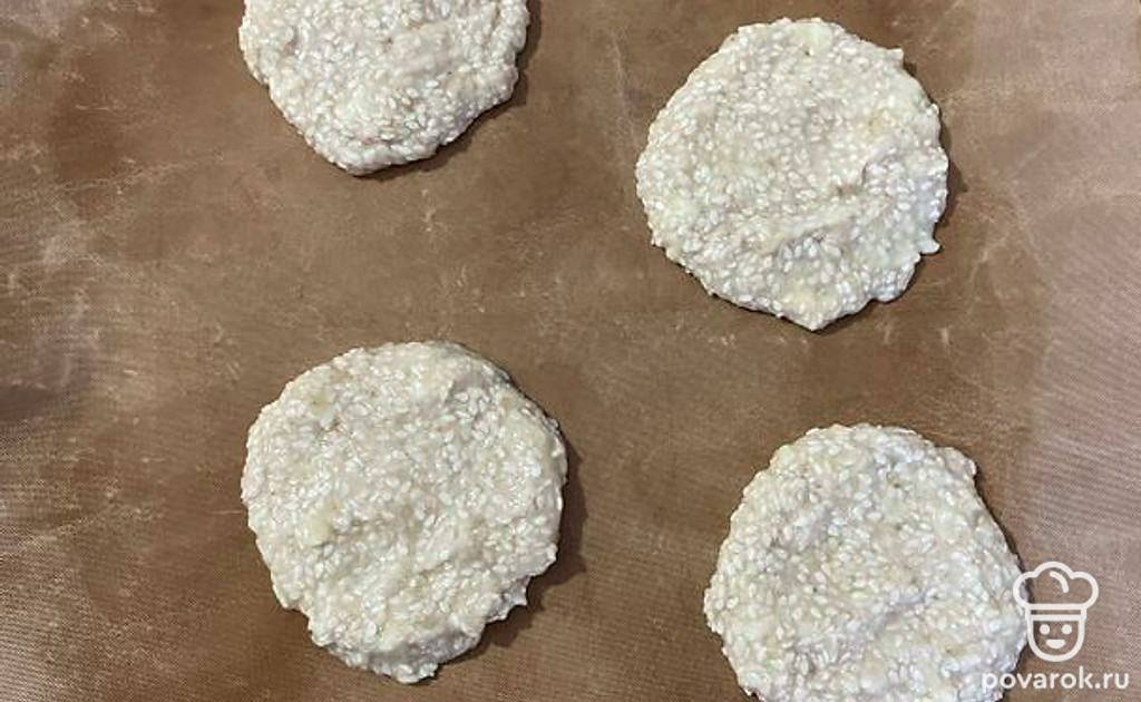 Застилаем пергаментом противень, формируем печенье, отправляем в духовку на 15-20 минут при 180 градусах.
