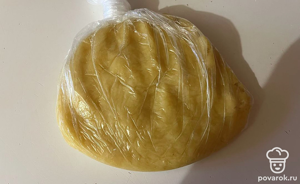 Поместите тесто в пакет и уберите его в морозилку на один час.