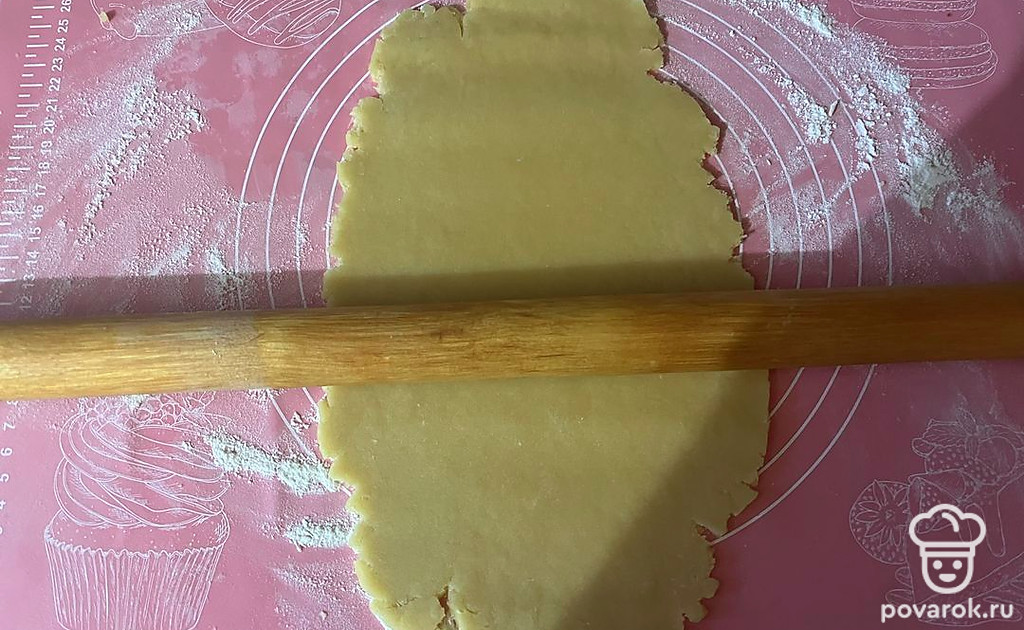 Раскатайте тесто в пласт толщиной 0,5 сантиметров.