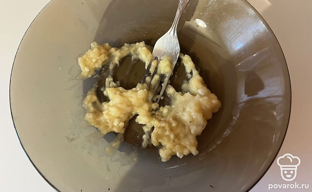 Банан очистите от кожуры и измельчите его в пюре при помощи вилки.