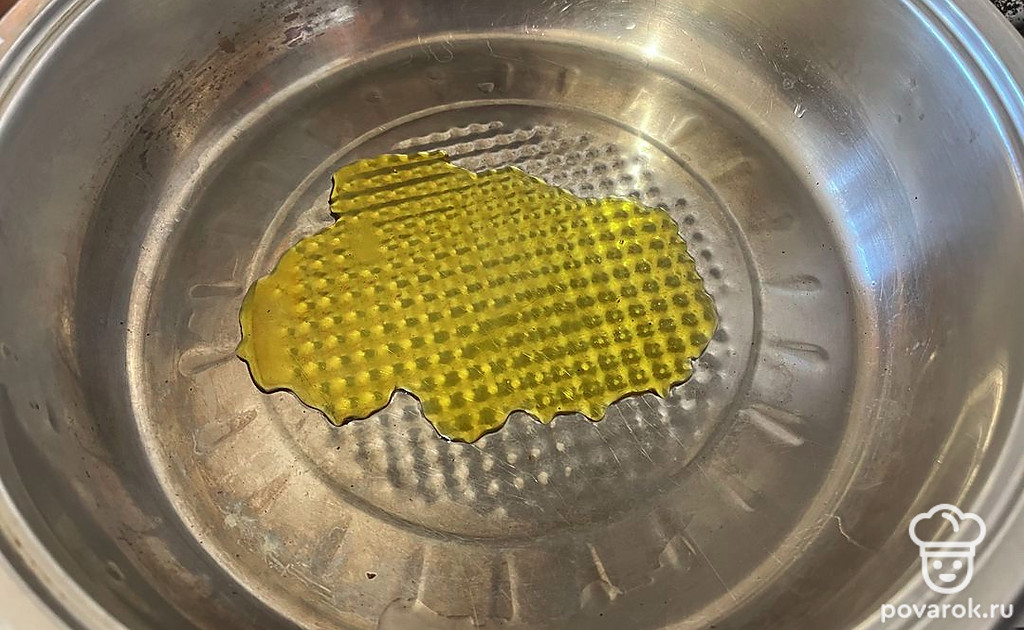 В сковороду вылейте оставшееся масло. Распределите его по всей сковороде.