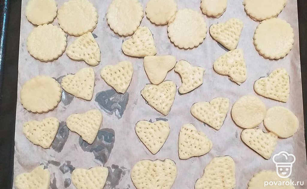 На противень, застеляный пергаментом, разложить будущую выпечку. Выпекать 15 минут в духовке при 180 градусах.