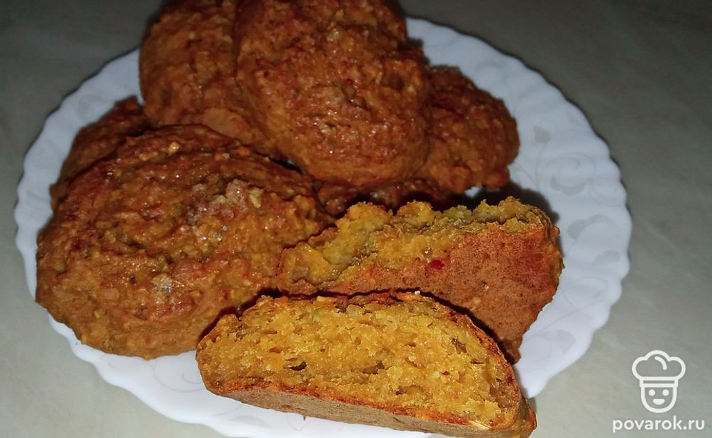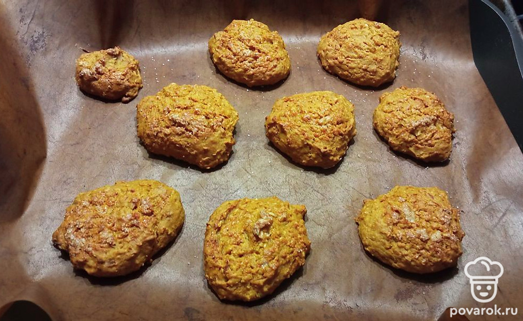 Тесто получается густое. С помощью ложки выкложить на противень. Запекать при температуре 180 градусов 20 минут.