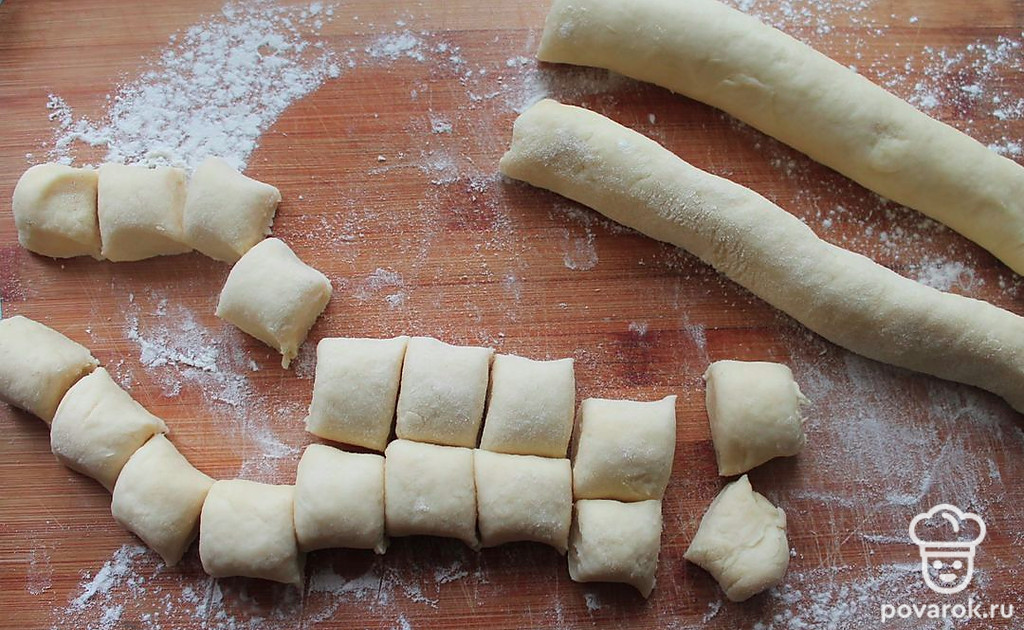 Свернуть рулет и разрезать на печенье длиной 1,5 сантиметра.