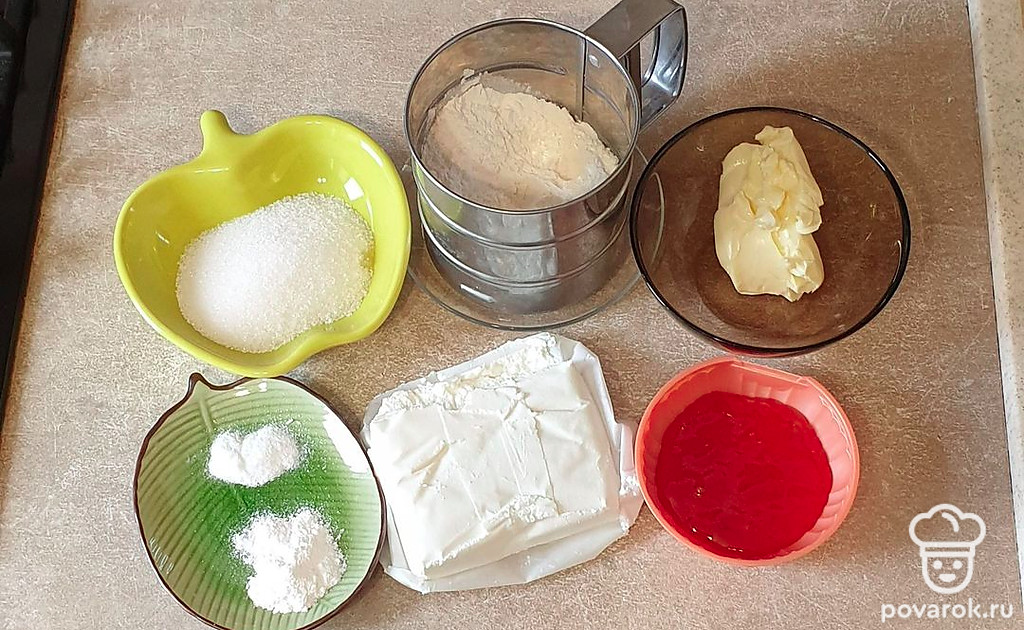 Подготовьте все ингредиенты. Масло и творог должны быть комнатной температуры.