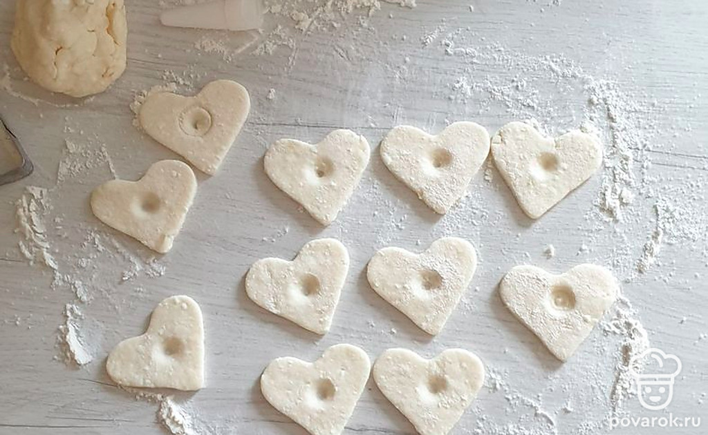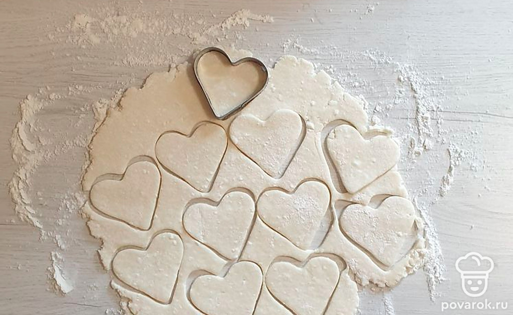 После того, как тесто охладится, достаньте его из холодильника и раскатайте в пласт. Формочкой вырежьте печенье.