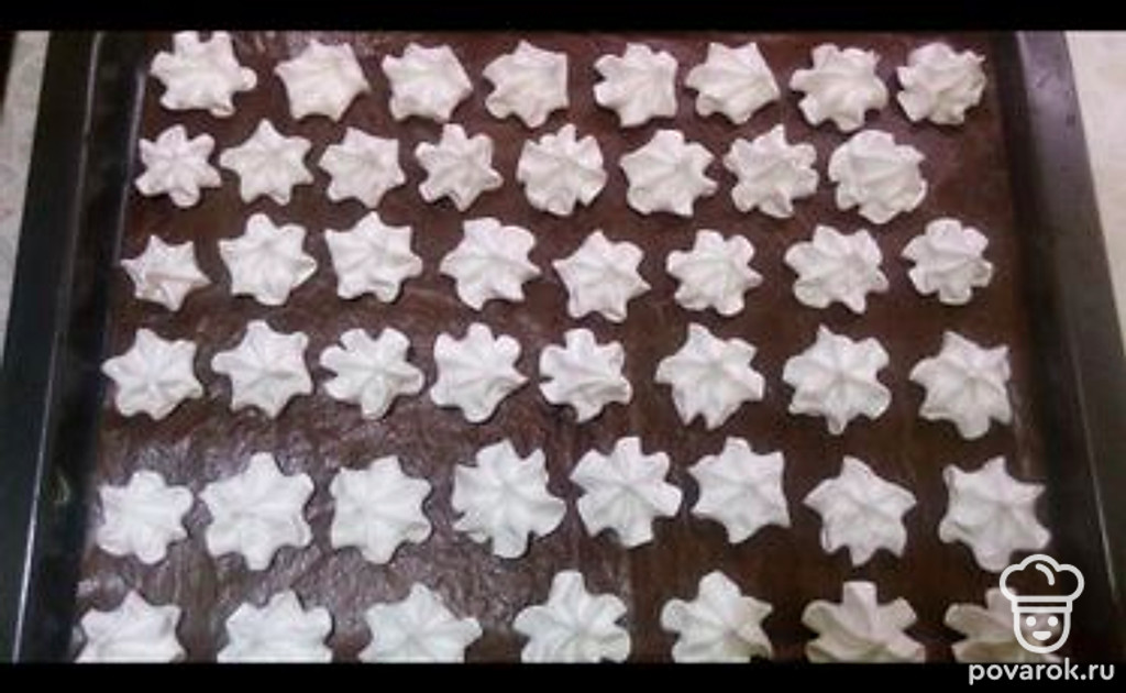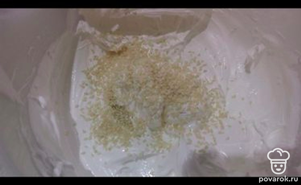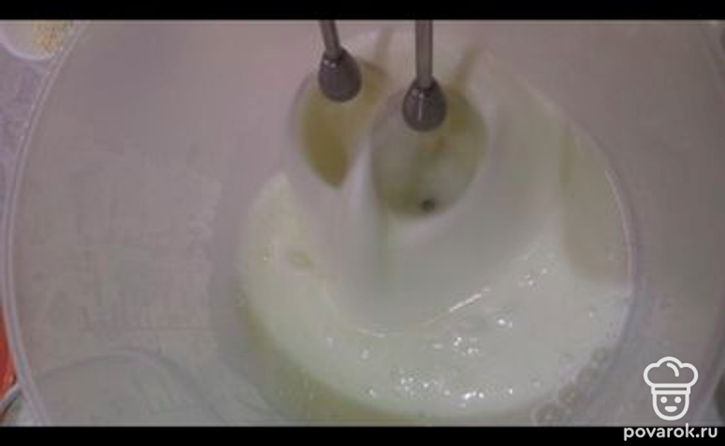 Яичный белок хорошо взбиваем до устойчивых пиков.