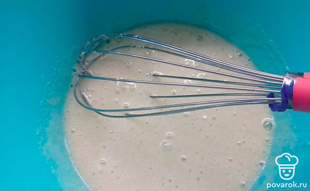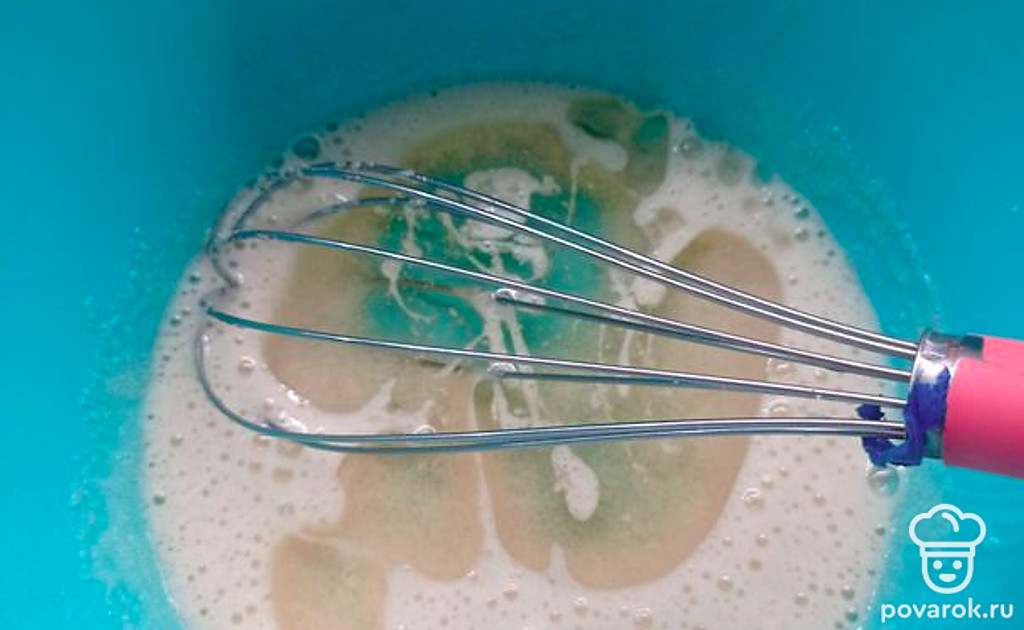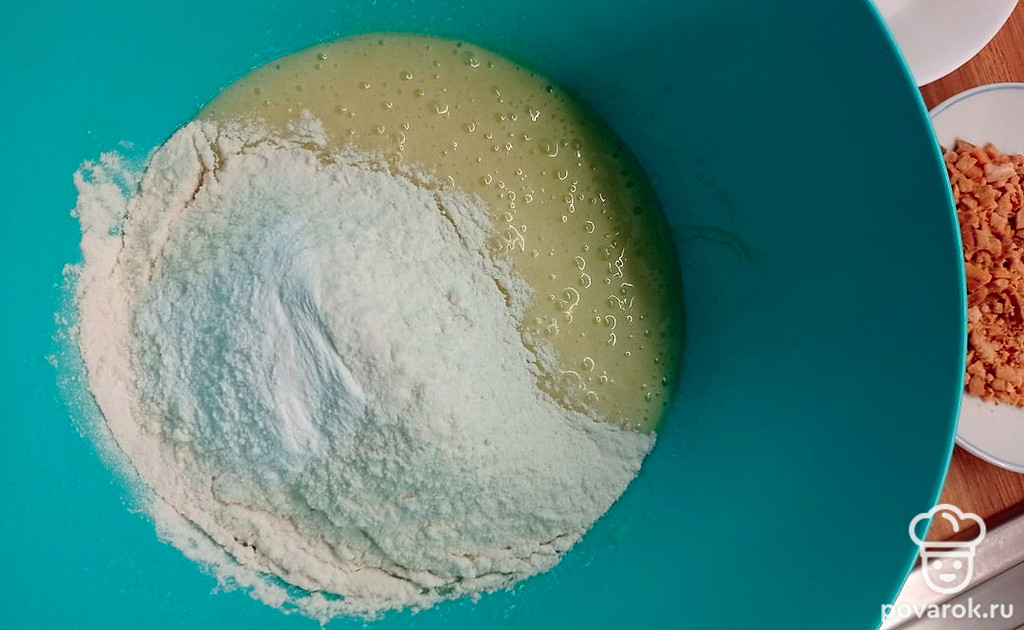 В готовую массу добавляем постепенно муку с разрыхлителем.