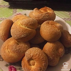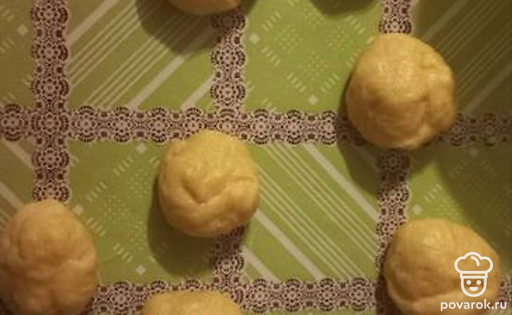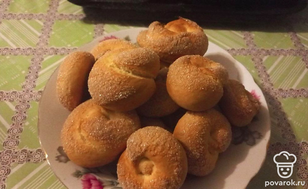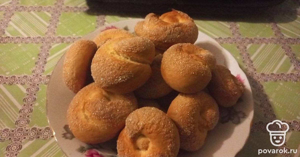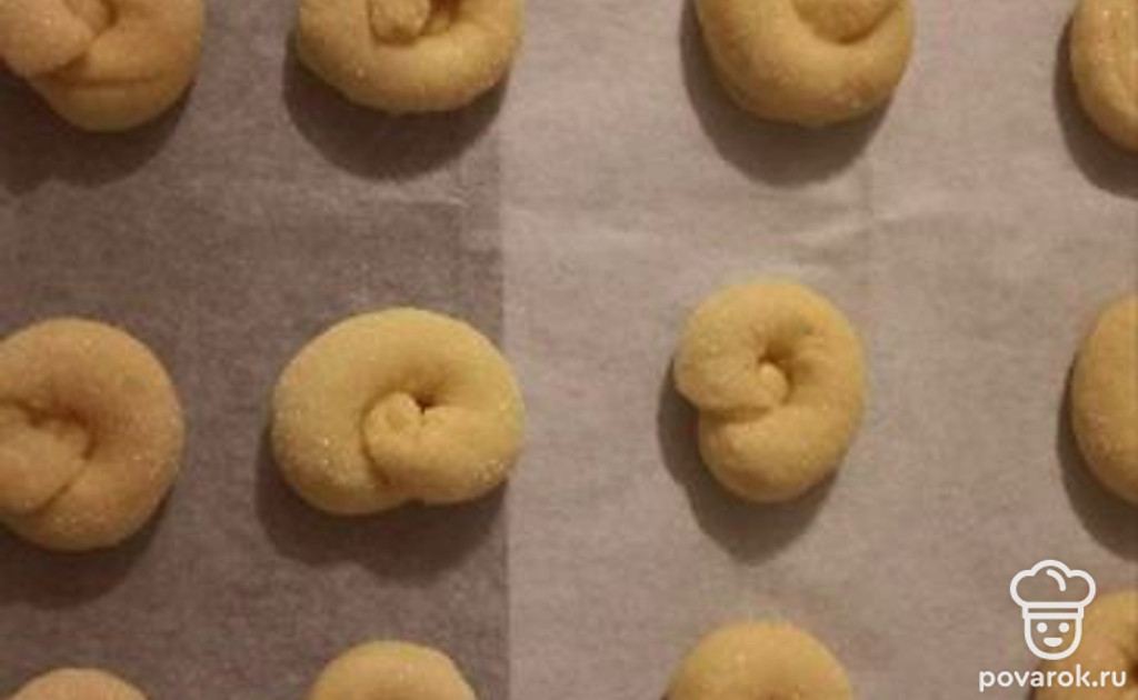 Обмакиваем одну сторону в сахаре, выкладываем на застеленный пергаментом противень и ставим выпекать при 180 градусах на 20-25 минут до золотистого цвета.