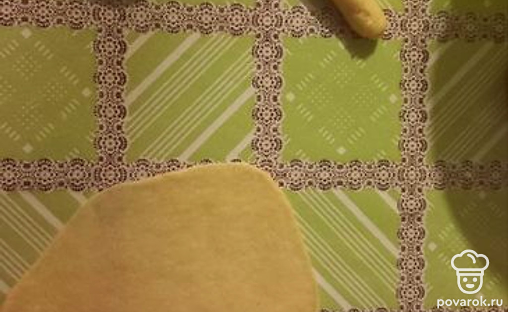 Раскатываем очень тонко, сворачиваем в колбаску и делаем «розочку».