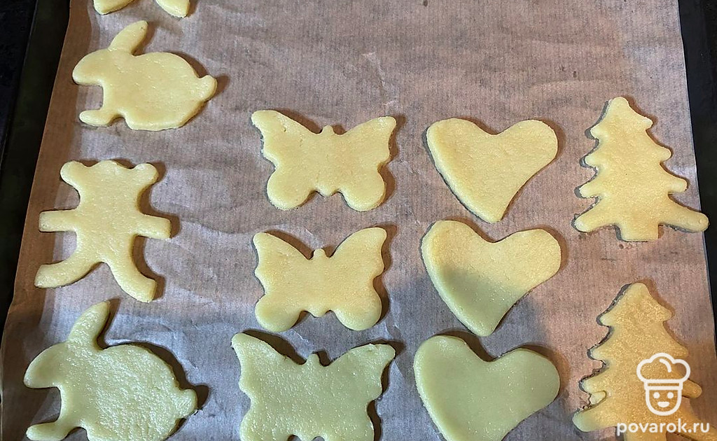 На смазанный маслом пергамент выкладываем печенье и отправляем в духовку на 30 минут при 180 градусах.