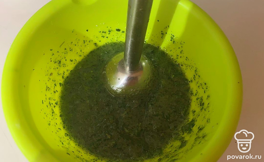 В миске соедините растопленное сливочное масло, сахар и мяту.
