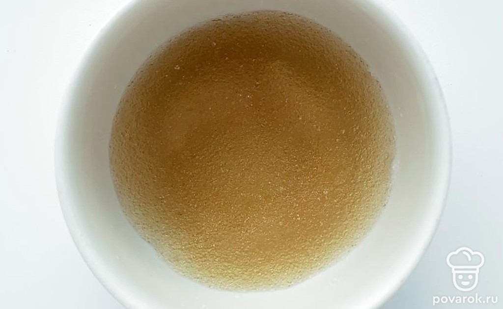 В это время приготовить начинку - замочить желатин в воде на 5 минут.