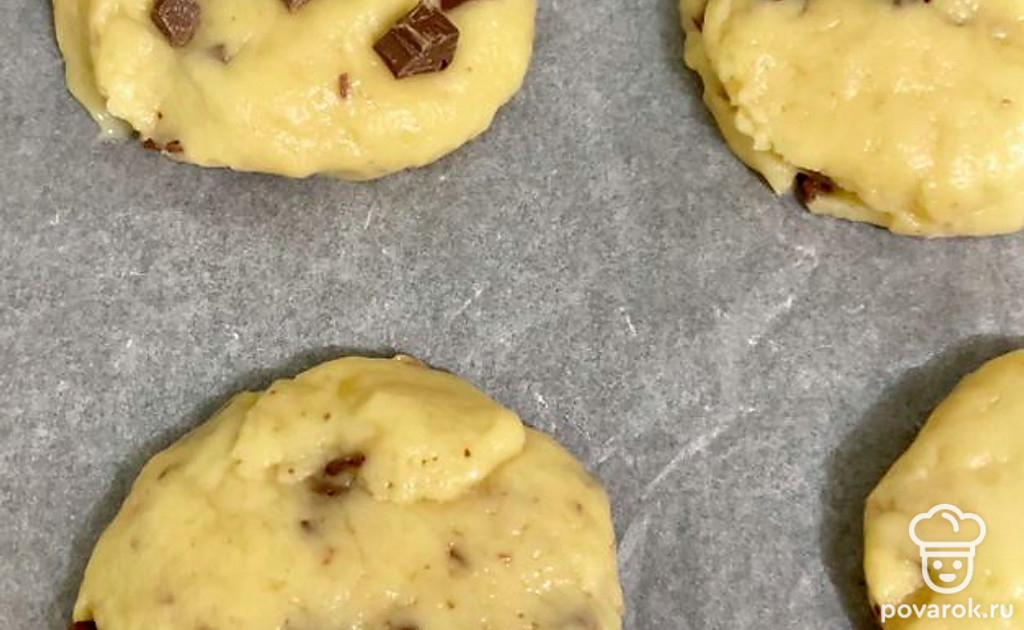 Скатайте из теста круглые печеньки и разложите на пергамент. Украсьте печеньки с верху оставшимися шоколадками. Выпекайте в разогретой духовке 15 минут при 180 градусах. Приятного аппетита!