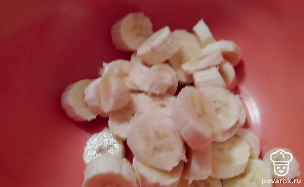 Бананы очистите и нарежьте на кусочки. Вилкой или блендером измельчите до образования пюре.