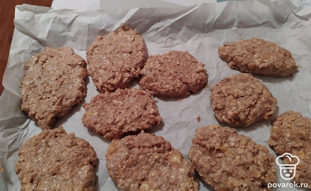 Из получившейся массы сформируйте печенье на пергаменте и отправьте в предварительно разогретую духовку до 180 градусов на 30 минут.