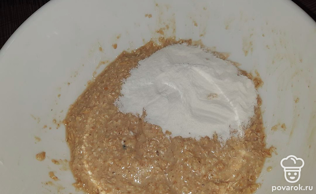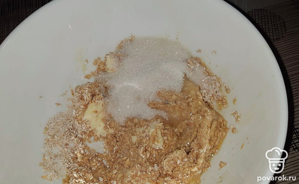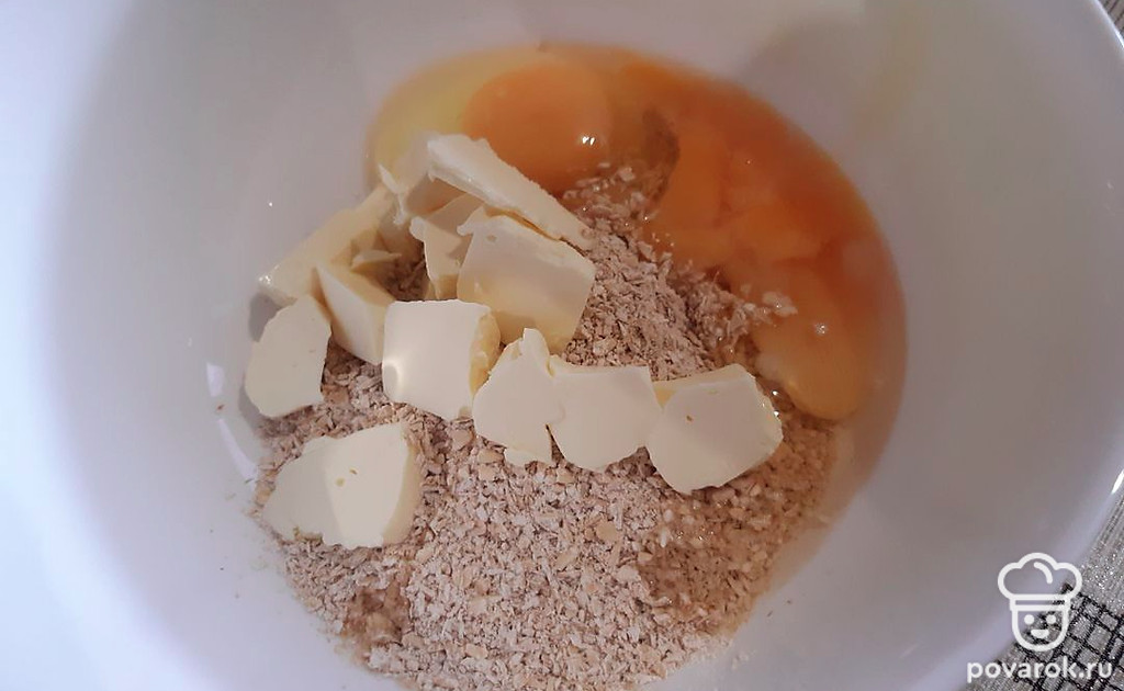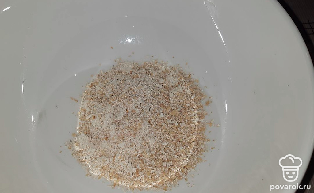 Овсяные хлопья перемолоть в блендере, высыпать их в миску.