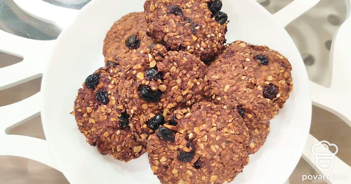 Домашнее овсяное печенье с бананом, изюмом и кунжутом