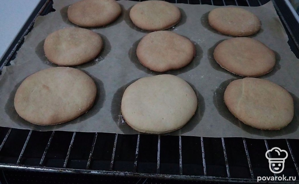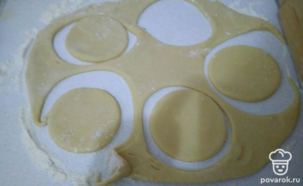 Раскатайте пласт шириной 6 мм. Формочкой или другим подходящим предметом вырежьте фигурки или круги. Перенесите их на противень. Если нет пергамента, то можно слегка присыпать противень мукой.