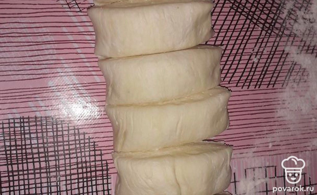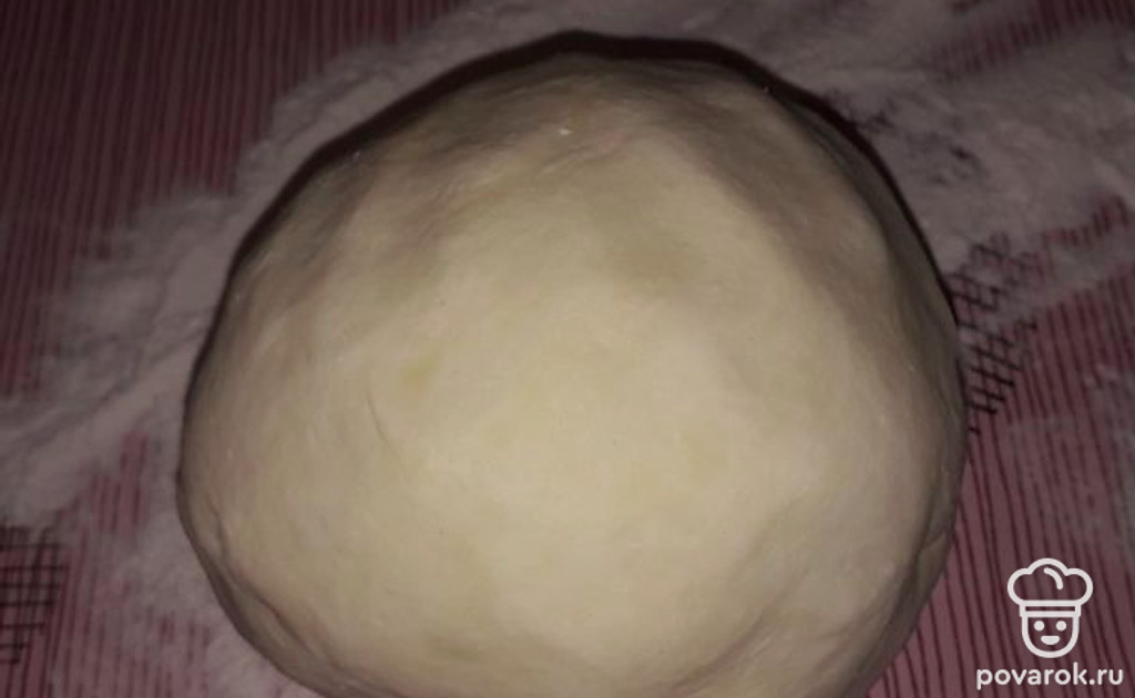 Достать тесто, раскатать в колбасу и разделить на шарики по 3-5 см в диаметре.