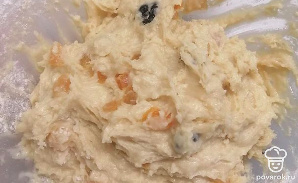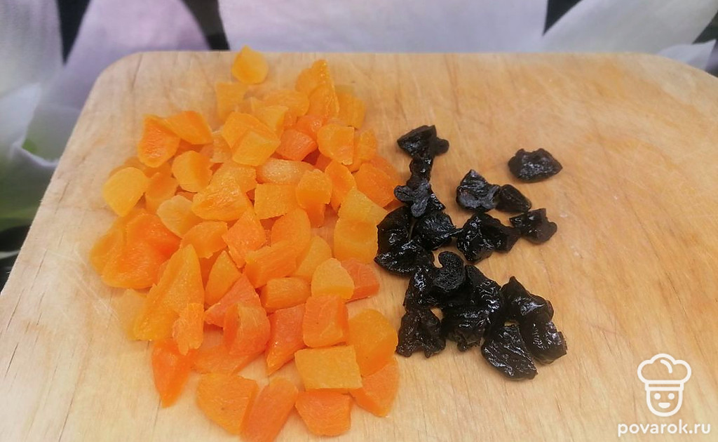 Выложите нарезанные курагу и чернослив в миску со смесью.