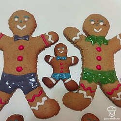 Подавайте имбирных человечков на одной большой тарелке, украшайте по своему желанию. Обязательно дополняйте печенье чашкой горячего чая.