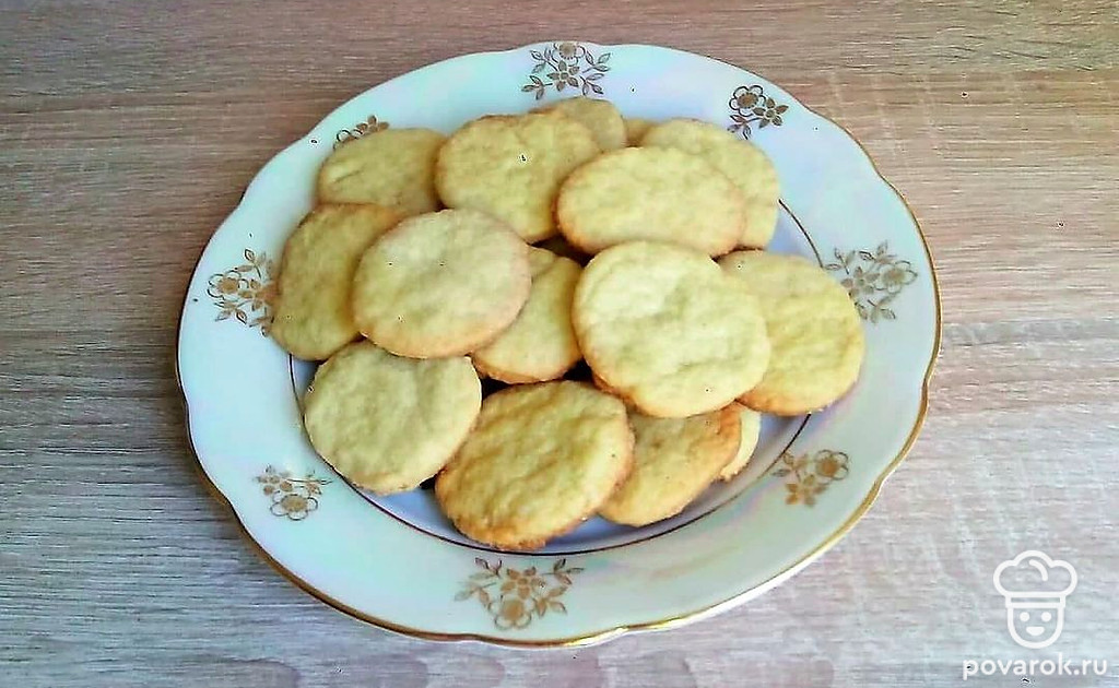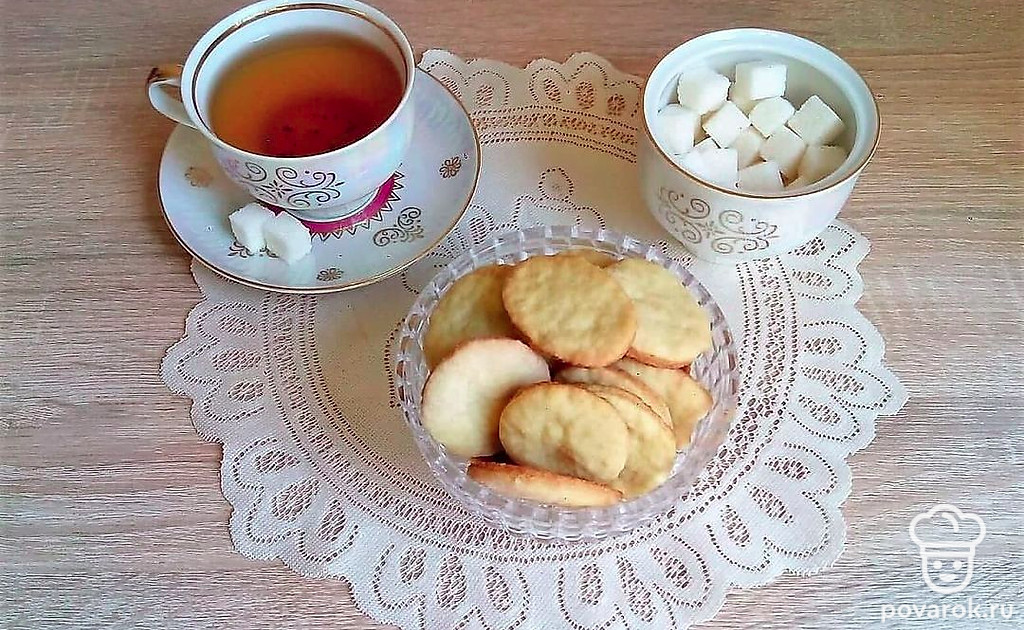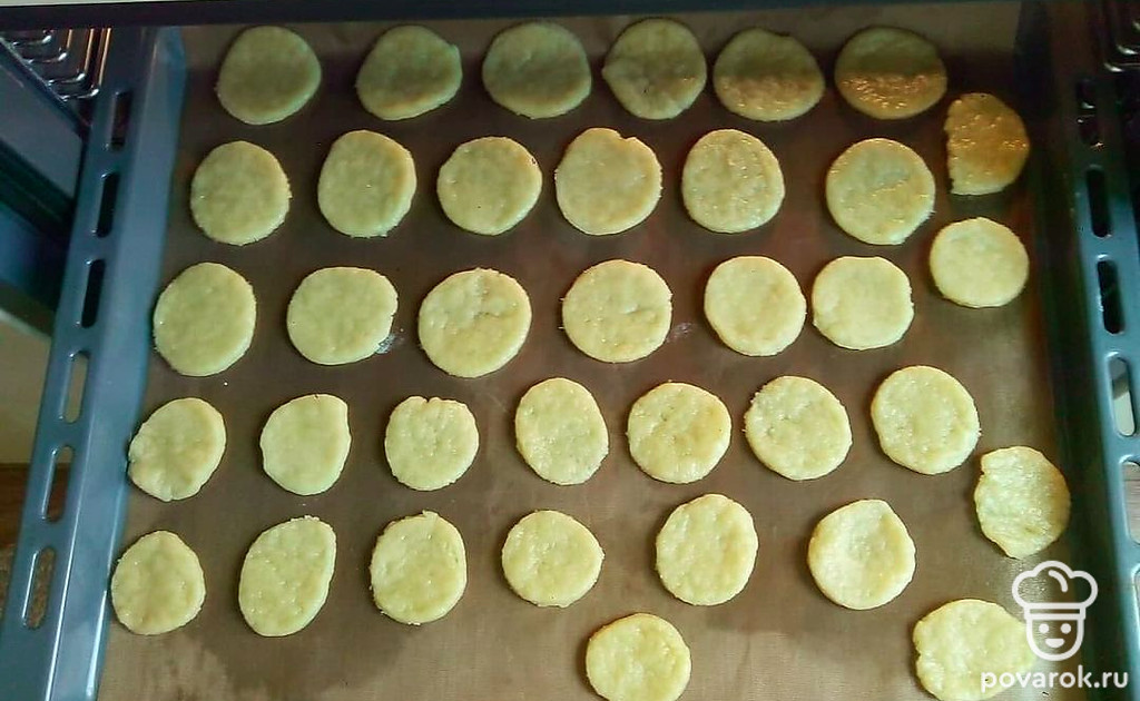 Раскатайте тесто и повырезайте кружочки. Для этого используйте стакан или форму. Отправьте готовые кружочки в духовку и выпекайте при температуре 180 градусов 10 минут. Если печенье достаточно толстое, то убавьте температуру до 160 градусов и выпекайте до готовности.