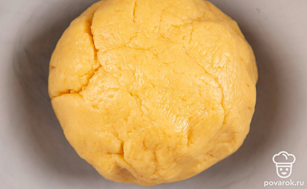Перемешайте и замесите тесто. Оно должно получится плотным и упругим.
