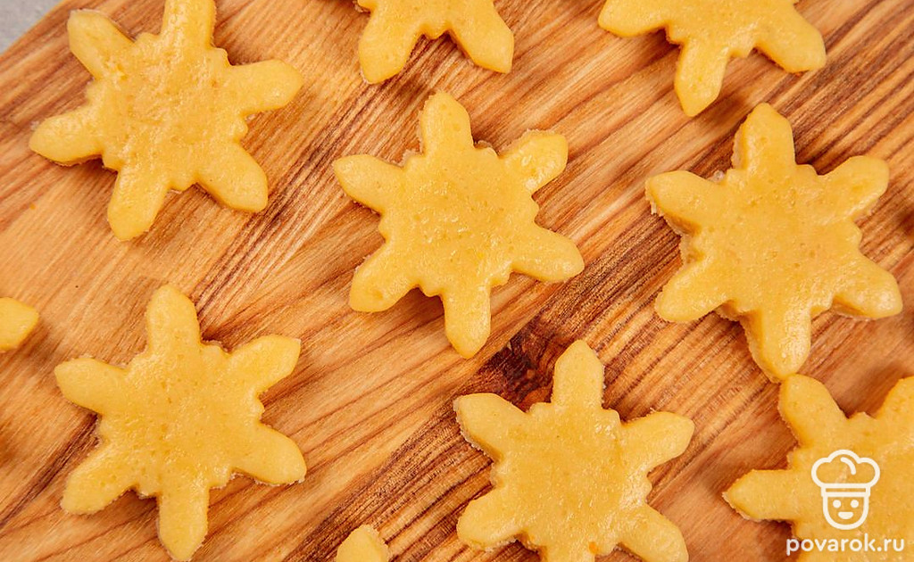 Раскатайте тесто в пласт шириной 6-7 мм. С помощью формочки вырежьте будущие печенья.