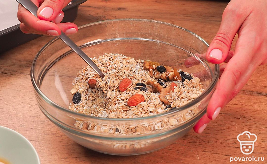 Чтобы сделать печенье из хлопьев еще полезнее, используйте максимально разнообразную смесь сухофруктов.