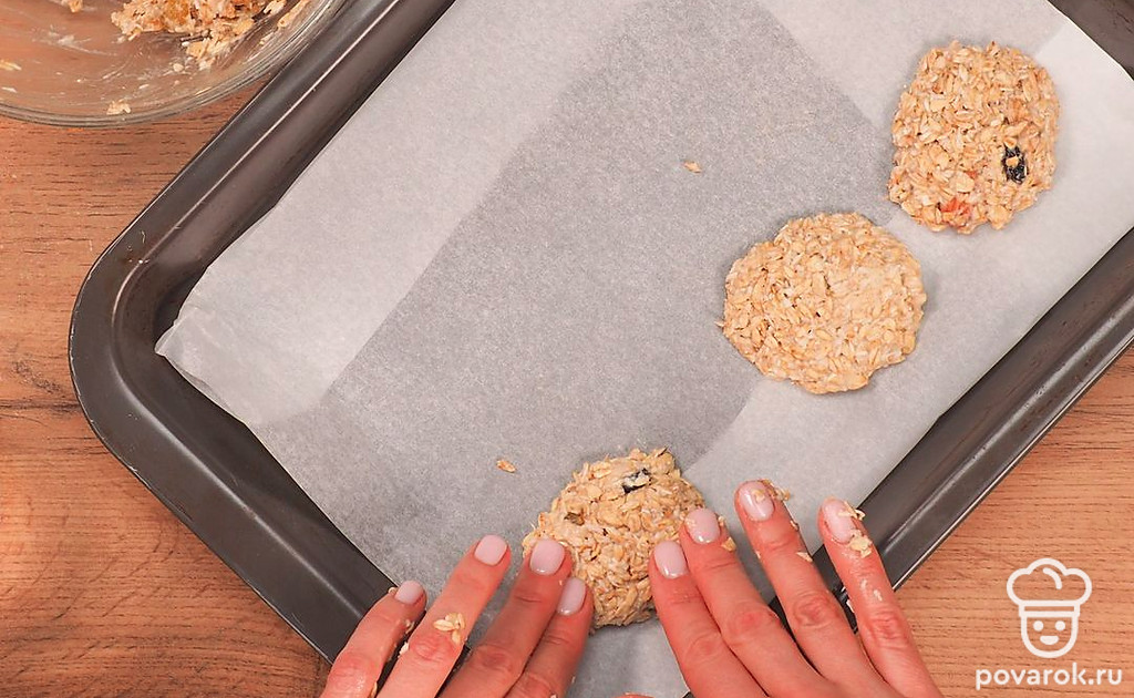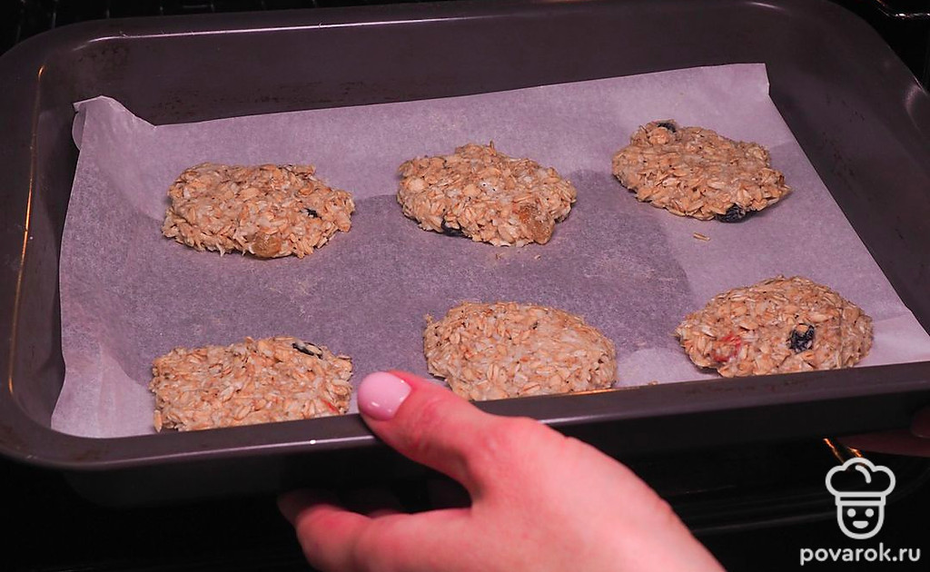 Разогрейте духовку до 180 градусов и поставьте внутрь получившееся овсяное печенье на 15-18 минут.