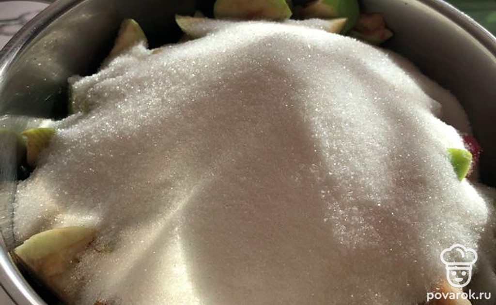 Когда яблоки дали сок, можете начинать варить. Нагревайте на среднем огне до растворения сахара.