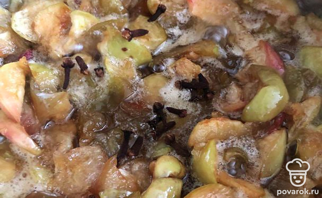 Я оставляю наставиться варенье даже на всю ночь, а утром провариваю второй раз. Когда варенье закипает повторно, добавьте гвоздику. Смотрите на свое предпочтение, можно больше: штук 20-30. Я добавила 15, и аромат еле чувствуется.