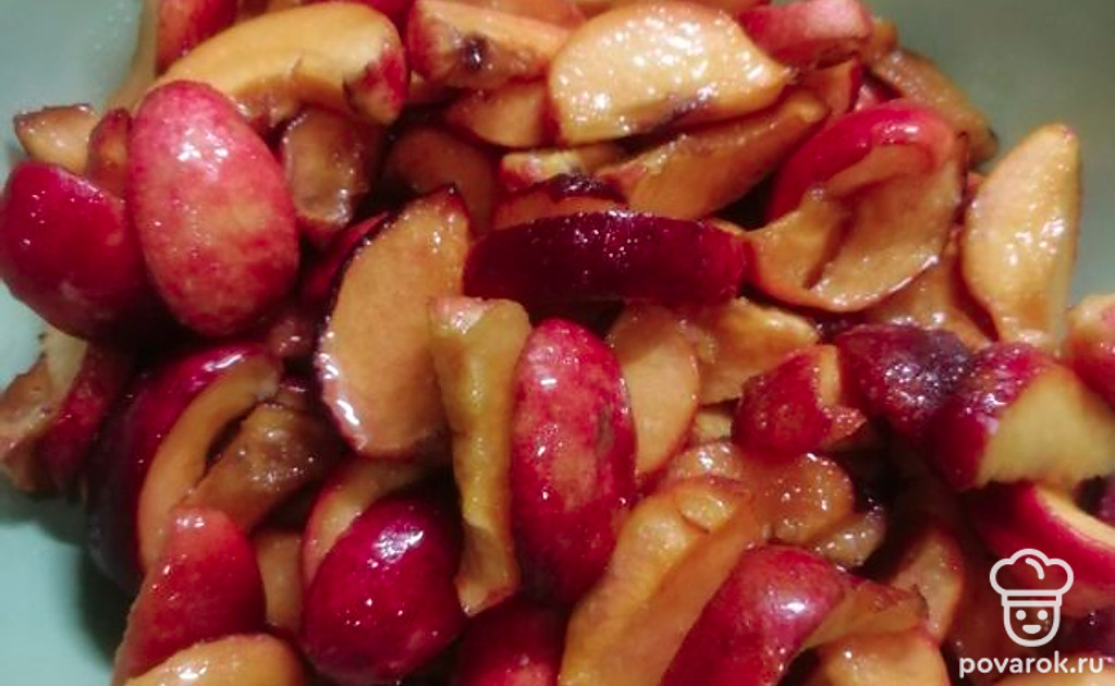 Нектарины помыть, нарезать на дольки среднего размера.