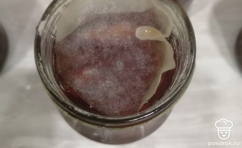 В каждую баночку сверху, чтобы не образовалась плесень, я кладу кружок из пергаментной бумаги, смоченной в спирте. Можно обойтись и без этого.