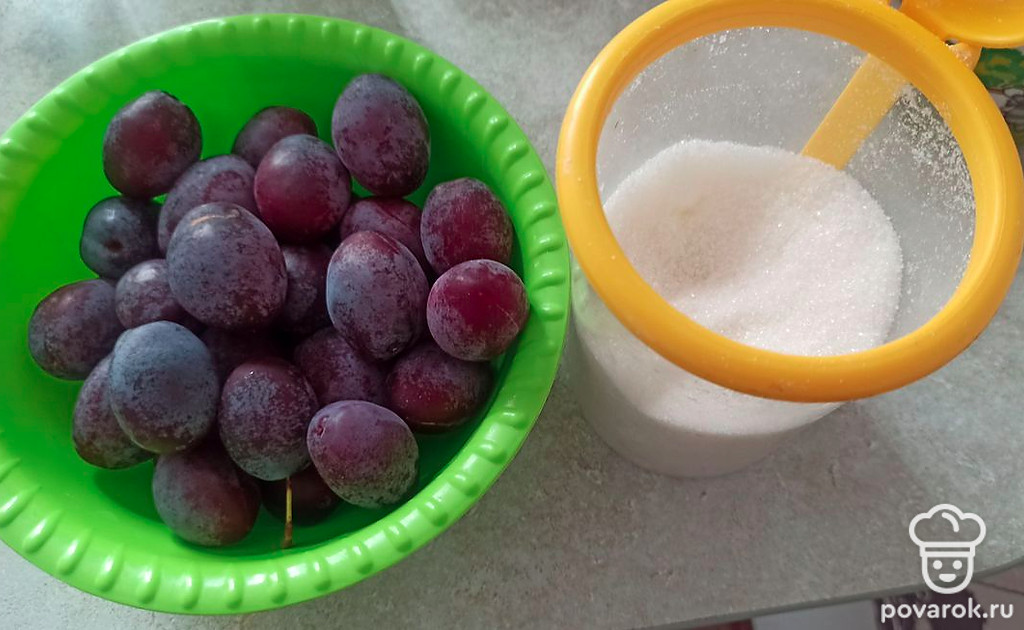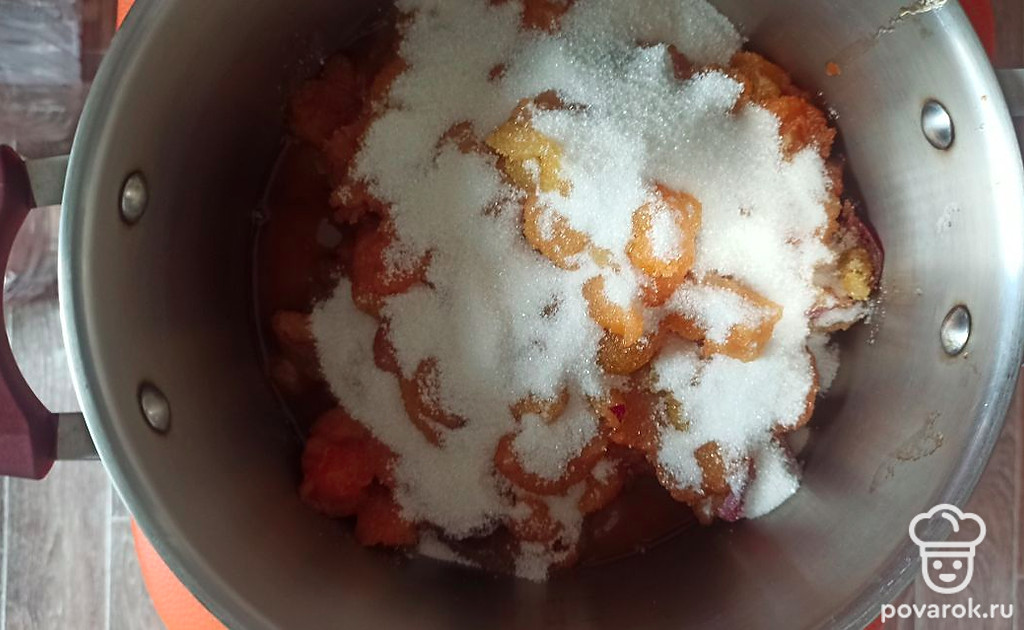 Уберем из слив косточки. Сливы засыпаем сахаром и ставим на медленный огонь.