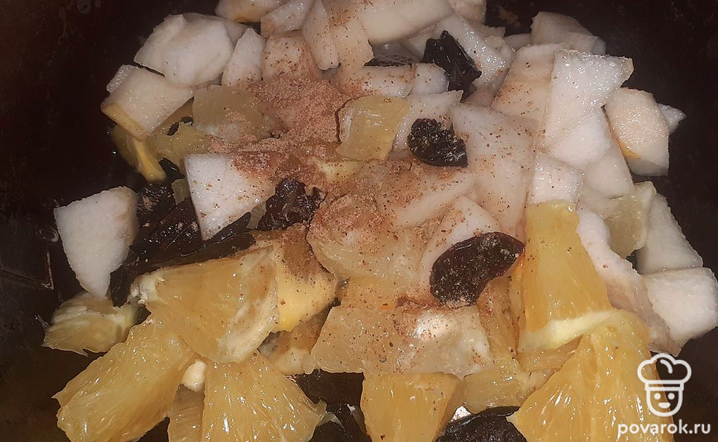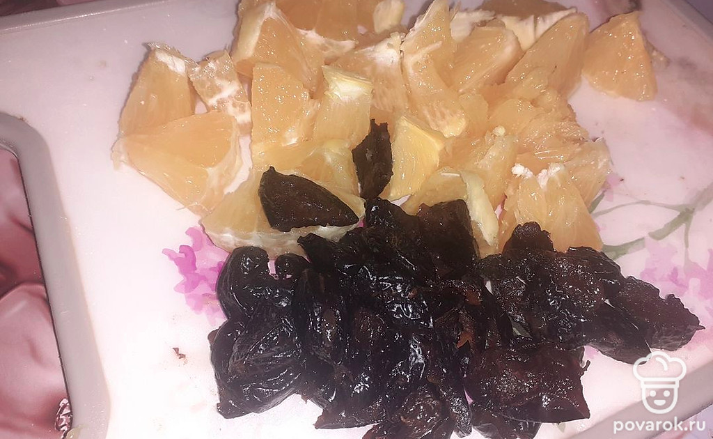 Нарезать апельсин и чернослив.